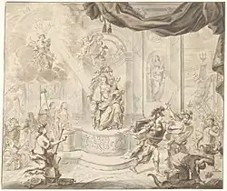 The southside of the Amsterdam townhall, where the Wisselbank was located. Print by Jan de Beijer (1758)
