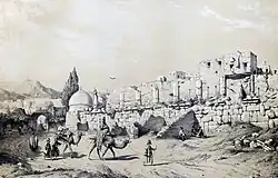 Drawing by Eugène Flandin, 1840s. He mentioned the building as "the Greek temple".