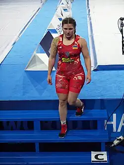 The following year, she represented Ukraine at the 2014 European Juniors Wrestling Championships, held in Warsaw, winning a bronze medal in 72 kg event.[5] At the next European Junior Championships, held in Istanbul, she won a silver medal in 72 kg event, losing Sabira Aliyeva from Azerbaijan in final match.[6]