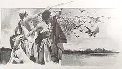 The two armies clashed on 9 May 869, and the fight lasted all day. Bird wings darkened the sky. In the battle Tyr killed Vlastislav. Before his death, Vlastislav's soul flew out of his mouth and flew into the surrounding tree branches. Tyr then lost his horse and was killed himself. Encouraged by Tyr's victory, the Czechs won the battle. They built a monument to Tyr on top of the artificial mound Krliš and buried him there.[2] About twenty thousand men clashed in the battle, which was a tenth of the population of the then Bohemia.
