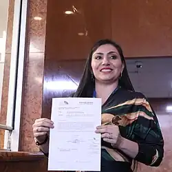 She represents the Zamora Chinchipe Build Movement. She uses her position to question the government. She raised the slow progress being made in creating a university for the Amazon[4] and a new hospital for Zamora.[5] The link known as the 4th Road Axis was a collaboration with Peru. She reminded the assembly that Peru has completed their part but the section in Ecuador is stalled.[6]