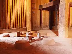 Andriamasinavalona's reorganization and refinement of the subdivisions of the noble class took into account the precedents set by earlier Merina kings Andrianjaka and Ralambo. He declared that only members of the Zazamarolahy ("Numerous Children") caste, composed of nobles descended from Andrianjaka's children, could be shaded by the red parasol of royalty;[8] the tradition of the royal parasol was introduced to Imerina during Andriamasinavalona's reign and persisted until the dissolution of the monarchy in 1897.[11] He also decreed that their tombs should be topped with a tranomasina, a small wooden house without windows or hearth and containing their worldly riches, where their spirit could return to visit after death. Unlike other noble subcastes, the Zazamarolahy were not constrained to inhabit a particular neighborhood, as Andriamasinavalona acknowledged the privilege of future sovereigns to determine the proximity of these most influential nobles according to the particularities of changing circumstances.[8] Andriamasinavalona also narrowed the pool of potential future sovereigns by restricting this right to a new sub-group within the Zazamarolahy, which he termed Zanak'andriana ("Children of the Sovereign"). This group comprised all the descendants of the royal wives who had given birth to the king's four designated heirs. New rulers could only be selected from among this new sub-class of nobles.[12]