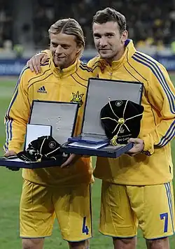 131. ^ "Andriy Shevchenko – Century of International Appearances". rsssf.org. Archived from the original on 23 April 2023. Retrieved 8 November 2019.