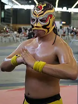 On November 16, 2013, Wu debuted for Wrestle-1 (W-1), teaming with Daiki Inaba and El Hijo del Pantera to defeat Hiroshi Yamato, Mazada and Nosawa Rongai.[5] From his debut, Wu feuded with Tokyo Gurentai's Mazada and regularly teamed with El Hijo del Pantera. On January 12, 2014, he defeated veteran Mazada in a singles match at Korakuen Hall.[6] At Kaisen: Outbreak, Wu, Inaba and Yamato lost to Tokyo Gurentai.[7] On April 17, Wu defeated Mazada in another Korakuen Hall singles match.[8] On July 6, at Ryōgoku Kokugikan, Wu and Inaba defeated Mazada and Rongai.[9] Wu and El Hijo del Pantera moved onto feuding with Novus, a stable off wrestlers from the defunct Wrestling New Classic (WNC). At Total Nonstop Action Wrestling's Bound for Glory, Wu and El Hijo del Pantera lost to Jiro Kuroshio and Yusuke Kodama.[10] On February 13, 2015, after Wu and El Hijo del Pantera lost to Kazma Sakamoto and Koji Doi, the pair argued which ultimately led to El Hijo del Pantera joining the Desperado stable.[11] They briefly feuded; El Hijo del Pantera defeated Wu in the opening round of the tournament to crown the first Wrestle-1 Cruiser Division Champion,[12][13] but it came to an end on June 20 when the pair shook hands after Wu defeated El Hijo del Pantera.[14]