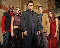 The series' narrative revolves around Angel and his colleagues, collectively making up the detective agency Angel Investigations, who fight against supernatural evils and work to "help the helpless".[5] A typical episode contains one or more villains, or supernatural phenomena that is thwarted or defeated, and one or more people in need of help, a few of whom Angel and associates are not able to assist (including some main characters) since episode one. Though elements and relationships are explored and ongoing subplots are included, the show focuses centrally on Angel and his road to redemption.