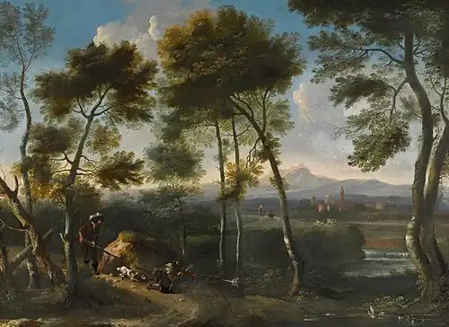Giovanni Angelo (c. 1620 – c. 1650), better known as Angeluccio, was an Italian or Flemish landscape artist. He was a prominent pupil of Claude Lorrain and was active in Rome around 1645–1650. As an eminent member of Bamboccianti, he acquainted and befriended other influencer artists of the time, including Michelangelo Cerquozzi with whom he often collaborated.[1] He is regarded as an artist of considerable talent and his works are often mistaken for his master's.[2]