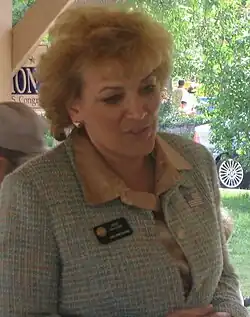 Paccione was re-elected to a second term in 2004 by a wide margin, defeating Republican Ed Hayes.[14] She rose to become Majority Caucus Chair in 2005 after the Colorado Democratic Party gained control of the assembly.[17] During both her terms in the legislature, Paccione sat on the Joint Committee on Computer Management — chairing the committee in 2006 — the House Committee on Business Affairs and Labor, and the House Committee on Education; she served as vice-chair of the Education Committee during her second term and chaired the subcommittee on Higher Education.[8]