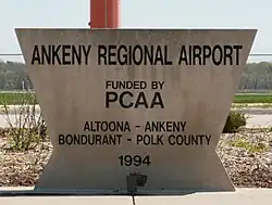 Ankeny Regional Airport (ICAO: KIKV, FAA LID: IKV) is a mile (2 km) southeast of Ankeny, in Polk County, Iowa. It is owned by the Polk County Aviation Authority.[1]