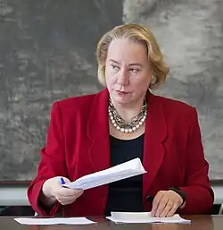 Olivarius graduated summa cum laude from Yale in 1977 and was elected to Phi Beta Kappa.[2] She received a Rhodes Scholarship to study at Oxford University in 1978, the second year the program admitted women.[4] At Oxford, Olivarius pursued a D.Phil. in economics at Somerville College,[5][6][7] where her thesis was entitled Working Democracy: Analysis and prospects of British worker co-operatives.[8] In 1981, she married Jef McAllister, whom she had met at Yale.[2][9] In 1986, Olivarius graduated from Yale with a combined MBA and JD[10] which she finished in three years, completing her final year while pregnant.[1]