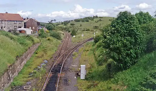 The station opened on 1 September 1870,[1] and closed to regular passenger services on 10 September 1951.[1] There was a line heading south from this station leading to Cumnock. There was also a line that headed north west to join the former Glasgow, Paisley, Kilmarnock and Ayr Railway just south of Monkton railway station.
