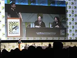 (L-R) moderator Geoff Boucher, producer Kevin Feige and original director Edgar Wright at the 2012 San Diego Comic-Con