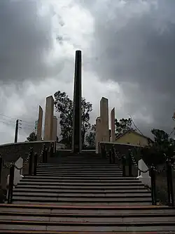 This period saw a major expansion of la ville moyenne, which spread along the lower hilltops and slopes of the city centered around the French residency. Modern urban planning was applied in la ville basse ("lower town"), which expanded from the base of the city's central hills into the surrounding rice fields. Major boulevards like Avenue de l'Indépendance, planned commercial areas like the arcades lining either side of the avenue, large parks, city squares, and other landmark features were built.[32] A railway system connecting Soarano station at one end of the Avenue de l'Indépendance in Antananarive with Toamasina and Fianarantsoa was established in 1897.[33] Beyond these planned spaces, neighborhoods densely populated by working-class Malagasy expanded without state oversight or control.[32]