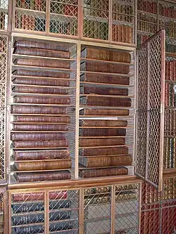 Storer left his complete library to Eton College in 1799. His collection of prints and extra-illustrated books also went to Eton, the extra-illustrated works being stored in a specially designed press brought from his Devonshire Street residence and installed in the College library to house the bequest.[4] Despite the riches of Storer's library – 87 books extra-illustrated by Storer in 143 volumes – the only title named in his will is James Granger's Biographical History of England.