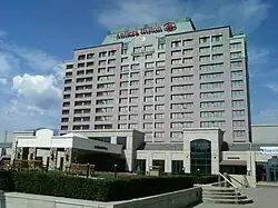 Western International operated the hotel until March 31, 1975, when it was taken over by the Broadmoor Management Company, which shuttled guests to and from The Broadmoor in a double-decker London-styled bus.[1] The Antlers hotel was remodeled for $24 million ($60.9 million today) in 1989–90.[11][19] By 1998, the hotel was operating as the Antlers Doubletree Hotel, when it was sold to the Adam's Mark Hotels & Resorts for $35.4 million ($68.3 million today) and renamed the Antlers Adam's Mark.[19][20]
