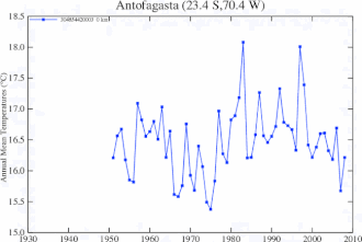 Average air temperatures in Antofagasta, 1951 to 2008, by (NASA).