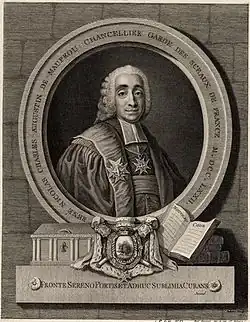 Bertrand de Molleville served his apprentice in the school of minister Maupeou. He was maîtres des requêtes in 1774. In 1775, Bertrand de Molleville defended the memoir of his ancestor chancellor Jean Bertrand, seigneur de Frazin,[3] attacked by Condorcet in his Éloge du chancelier de L'Hôpital, but he only published this apology after having communicated it to Condorcet lui-même.[4]