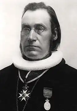 Anton Christian Bang (Norwegian pronunciation: [ˈɑ̂ntɔn ˈkrɪ̀stɪjɑn ˈbɑŋ]; 18 September 1840 in Dønna, Helgeland – 29 December 1913) was a Norwegian theologian, historian and politician for the Conservative Party of Norway. Bang was one of the more prominent figures within the Church of Norway in the decades around 1900.[1] He served as a professor of church history at the Royal Frederick University from 1885 onward, as Minister of Education and Church Affairs from 1893 to 1895, and as Bishop of Oslo from 1896 to 1912.