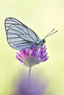 4. ^ a b c d "UK Butterflies (Black-veined White Aporia crataegi)". www.ukbutterflies.co.uk. Retrieved 4 June 2023.