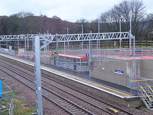 Go-ahead for construction of both Kirkstall Forge and Apperley Bridge was given in the National Infrastructure Plan released on 29 November 2011.[8][9] The original estimated completion date of August 2015[5][10] was not met, and the opening was later scheduled for the end of September 2015.[11][12] The station was eventually reopened on 13 December 2015.[13]