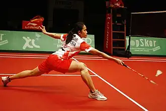 Aprilia Yuswandari (born 24 April 1988) is a badminton player from Indonesia.[1] She was part of the Indonesia junior team that won the bronze medal at the 2006 Asian Junior Championships.[2] Yuswandari who trained at the Pusdiklat Semen Gresik selected to join the national team in 2006.[3] In 2010, she joined the Asian Games squad that won the women's team bronze after defeated by the Thai team in the semifinal.[4][5]
