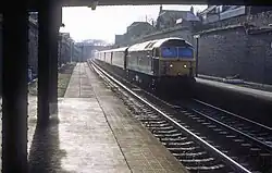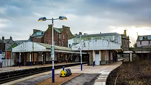 Arbroath railway station serves the town of Arbroath in Angus, Scotland. The station is 17 miles (27 km) east of Dundee on the line between Dundee and Aberdeen, between Carnoustie and Montrose. There are two crossovers at the north end of the station, which can be used to facilitate trains turning back if the line south to Carnoustie is blocked.[4] ScotRail, who manage the station, provide most of the services, along with CrossCountry, London North Eastern Railway and Caledonian Sleeper.