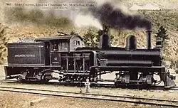 The line was steeply graded and sharply curved, with a standard of 6% grade maximum and 32° minimum curvature (181 feet (55 m) radius); even so, it required six switchbacks on the ascent. Due to these grades, geared steam locomotives were used exclusively, the railroad rostering a total of seven two-truck Shay locomotives.
