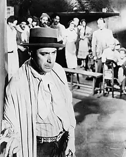 Aside from tango-based films, film scholars, notably Ana Laura Lusnich, have also identified another important genre of the classical era of Argentine cinema, the so-called drama social-folclórico (English: "social-folkloric drama"),[148][149] a local variant of the epic film that was prevalent between 1933 and 1956.[150] The social-folkloric drama emerged as a distinctive style that weaved together influences from established cinematic traditions and local artistic expressions, such as literature, theater, and visual arts.[151] It is defined by straightforward narratives that progress through a defined temporal and spatial journey, featuring protagonists whose lives are deeply intertwined with their social surroundings.[151] The visual and auditory elements are crafted to heighten the storytelling and emotional impact, while the narrative structure often incorporates framed tales that create a unified whole.[151] This model frequently delves into cultural tensions like civilization versus barbarism and rural versus urban life, reflecting broader societal themes.[151] Within this framework, two main variants stand out: biographical films, which portray either historical figures or popular heroes, and historical dramas, encompassing stories of independence struggles, social and economic conflicts, or romantic intrigues, showcasing the versatility of this cinematic approach.[151] Examples include biographical films such as Su mejor alumno (1944) and Santos Vega vuelve (1947); films set during the Independence era such as Viento norte (1937), La guerra gaucha (1942) and Pámpa bárbara (1945); and films focused on socioeconomic conflict such as Kilómetro 111 (1938), Prisioneros de la tierra (1939), El cura gaucho (1941) and Las aguas bajan turbias (1952), among others.[152]