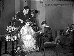 In the early 1920s, Argentine silent cinema entered a crisis caused, on the one hand, by the recovery of European industry after the end of the war and, on the other hand, by the ascent of Hollywood cinema to a position of unparalleled international dominance.[59] Leopoldo Torres Ríos, a future filmmaker and one of the country's first film critics, denounced this situation in 1922: "When they show an Argentine production, they do it as if it were alms. Those same gentlemen endure daily the cinematographic detritus sent from the East to the West and our public, on their immense, broad backs, carries it without a protest."[60] The 1920s was marked by the activity of four main directors: José A. Ferreyra, Nelo Cosimi, Edmo Cominetti and Julio Irigoyen.[61] In this decade, the first model of tango-based films was systematized, despite the absence of sound, with titles including Milonguita (José Bustamante y Ballivián, 1922), La cieguita de la avenida Alvear (Julio Irigoyen, 1924), La borrachera del tango (Edmo Cominetti, 1928) and La vendedora de Harrods (Francisco Defilippis Novoa, 1921).[62] These silent films laid the groundwork for the tango melodramas that defined the Argentine cinema of the early classical period in the following decade.[63]