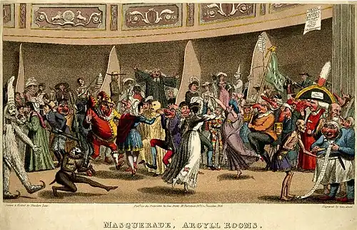 The printmaker Theodore Lane etched the print Masquerade at the Argyll Rooms in 1826.[9]