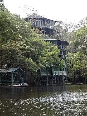 The hotel complex was one of the oldest and largest jungle lodges in the Amazon.[3] It became known for its luxury accommodations and celebrity guests.[4] Describing it as "the ultimate treehouse", travel writer Patricia Schulz included the hotel as one of her "1,000 Places to See Before You Die".[5] On the other hand, the editors of Frommer's South America severely criticized the hotel for its "mass-market" offerings and its lack of environmental sensitivity, calling it "all that is wrong with Amazon 'ecotourism'".[6] The hotel closed down in 2016.[7]