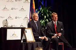 Each year, the Arizona Chamber honors a distinguished individual with the Arizona Heritage Award. The Award is given to those whose accomplishments and commitments to Arizona are recognized in Arizona, nationally, and internationally. Past recipients of the award have included Associate Justice Sandra Day O’Connor, Congressman Mo Udall, Senator Barry Goldwater, businessman Jerry Colangelo, Senator John McCain, and Senator Jon Kyl.[13]