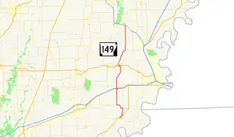 Highway 149 (AR 149, Ark. 149, and Hwy. 149) is a north–south state highway in northeast Arkansas. The route of about 41.28 miles (66.43 km) runs from Highway 38 in Hughes north across Interstate 40 (I-40) and I-555 to AR 140/AR 75/AR 14 in Marked Tree.[2]