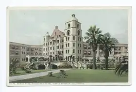 The Arlington Hotel was a historic hotel in Santa Barbara, California, United States.[1] Opened in 1876, it was one of the grandest hotels in the West. The original building burned down on 15 August 1909, and a replacement hotel was completed in 1911 at a cost of over one and a half million dollars.[2] This building suffered further misfortune when a strong earthquake devastated the town in 1925, and the hotel was left in ruins.
