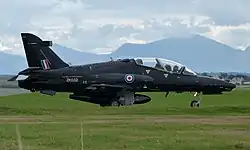 RAF Hawk T-2 ZK032 taxies for take-off at RAF Valley.