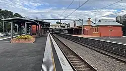 The platform buildings are of aesthetic significance, the Platform 1/2 building being an elaborate Victorian Italianate style building with decorative cast iron columns and brackets to awnings, and elaborate detail, the Platform 3/4 building being an altered 1884 wayside platform building altered to an island platform building in 1923, with major alterations including new platform awnings, and alterations to windows, doors and joinery.[3]