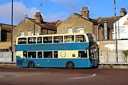 The company was founded in 1901 as Southend-on-Sea Corporation Transport, and was renamed Southend Transport in 1974. It began operating motorbuses in 1912, and became a limited company on 26 October 1986 due to the Transport Act 1985.[1] Southend Transport was involved in a bus war with Thamesway (now part of First Essex).[2] Southend Transport was sold by Southend-on-Sea Borough Council to the British Bus group in June 1993[3][4] for a reported £1,[5] which in turn was taken over by the Cowie group.[1][6]