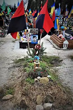 On June 21, 2022, the funeral service at the Saints Peter and Paul Garrison Church in Lviv was led by Bishop Volodymyr Hrutsa. During the funeral, Artemii's mother Ivanka Krypiakevych-Dymyd sang her son's last lullaby. He was buried at Lychakiv Cemetery on the field of honorary burials.[10][11]