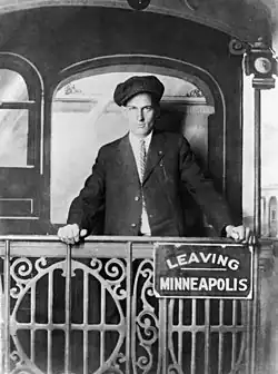 In Minneapolis, he became involved with the Industrial Workers of the World (IWW, or "Wobblies"). He led an IWW free speech rally in Minneapolis, where he was arrested for participating and sentenced to three years in jail. Evans later recalled: "All I did was read it. I was too shy and nervous then to make up any speech of my own."[4] In 1912, he led a strike of political prisoners, resulting in his release.