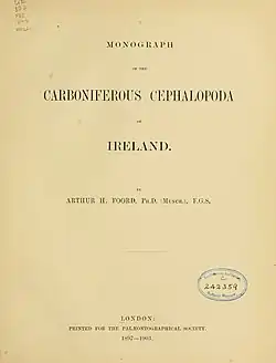 1. ^ a b c d e f Histon, Kathleen; Vaccari, Ezio (2004). "Foord, Arthur Humphreys (1844–1933), palaeontologist and scientific illustrator". Oxford Dictionary of National Biography (online ed.). Oxford University Press. doi:10.1093/ref:odnb/57695. ISBN 9780198614111. Retrieved 27 December 2020. (Subscription, Wikipedia Library access or UK public library membership required.)