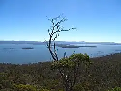 The Arthurs Lake is a man-made reservoir located in the Central Highlands region of Tasmania, Australia. The lake was created in the 1920s by the Hydro-Electric Commission of Tasmania damming the Upper Lake River, Blue Lake and Sand Lake as well as the Morass Marsh.[3] The principal purpose of the lake is to support the generation of hydroelectricity.