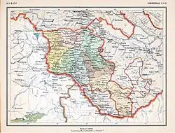 Artsvashen belonged to the Melik-Kalantarian family of landowners in the late 19th century.[4] It was later renamed to Hin Bashkend (Armenian: Հին Բաշքենդ), meaning Old Bashkend to differentiate it from New or Nor Bashkend, founded by migrants from the original settlement.[8] In 1920 the village was also referred to as Bashgyugh.[9] The village was affected by the Armenian–Tatar massacres of 1905–1906, undergoing 13 attacks from neighboring Turkic villages. Nevertheless, due to the well-organized self defense of the village, Artsvashen did not suffer the same destruction as other Armenian villages during that time.[10]