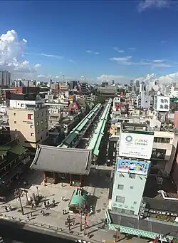 Asakusa (浅草; Japanese: [asakɯ̥ꜜsa] ) is a district in Taitō, Tokyo, Japan. It is known for Sensō-ji, a Buddhist temple dedicated to the bodhisattva Kannon. There are several other temples in Asakusa, as well as various festivals, such as Sanja Matsuri.