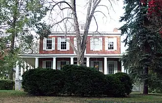 The house is architecturally notable for its imposing presence, emphasized by its foot-thick brick walls and commanding hilltop location. A significant addition to the house is the massive pillared porch that wraps around three sides of the building, which was added by Admiral Chauncey Thomas after he purchased the property in 1895.[2]