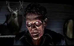A possessed Ash in Evil Dead II. Demonic versions of Ash are a recurring theme throughout the Evil Dead series.