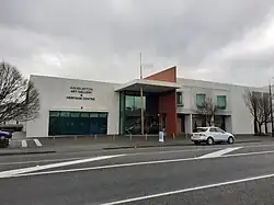 A new library and civic centre for Ashburton was built between 2021 and 2023, at a final cost of $62.1 million, with a $20 million contribution from the New Zealand government.[24][25][26] The three-story building includes council chambers, office space, a recording studio, areas to study in, a library and a performance area.[27] The design also incorporates the historic Pioneer Hall into the facility.[26] The civic centre was named Te Whare Whakatere.[28]