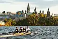 Students competing for the Ashbury College rowing team on the Ottawa River