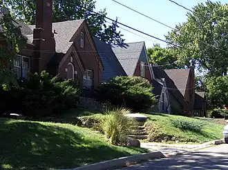The houses generally follow the conventional Tudor Revival and Colonial Revival styles as well a local variation of the Tudor style called "Beaverdale Brick".[2] There are both brick and frame structures that are 1½ and 2-stories and feature intersecting gables. A few of the houses are also constructed of limestone and of concrete block masonry. Some of the houses have a garage integrated into the houses design. Others were not built with garages and they were added at some point after World War II, and therefore do not contribute to the historic nature of the neighborhood. The more modern garages are also located behind the house and do not detract from the historic appearance of the neighborhood.[2] In general, the garages are front gable structures that were built to house one car. Most of the houses are modest in scale, which reflects their construction during the Great Depression, but there are a few examples of the high-style.
