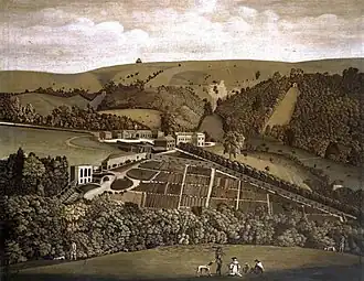 The current Ashcombe House was originally part of the much larger mid-eighteenth century structure, and is an L-shaped three-bay survival of the eastern wing.[2] There is a five-bay orangery close to the house.[2][8]