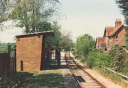 Ashey railway station is a station serving the village of Ashey on the Isle of Wight in England. It was on the line which ran from Ryde to Newport. It has a passing loop when built but this was taken out of use when a loop was provided at Havenstreet instead. The substantial station buildings were abandoned in BR days due to subsidence of the main platform, with the line moved to the opposite platform.