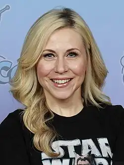 Ashley Eckstein (née Drane; born September 22, 1981)[1][2] is an American actress and fashion designer. She is the founder of the fashion label Her Universe. She is best known for voicing the role of Ahsoka Tano throughout the Star Wars franchise, beginning with Star Wars: The Clone Wars in 2008 as well as her recurring role as Muffy on That's So Raven.